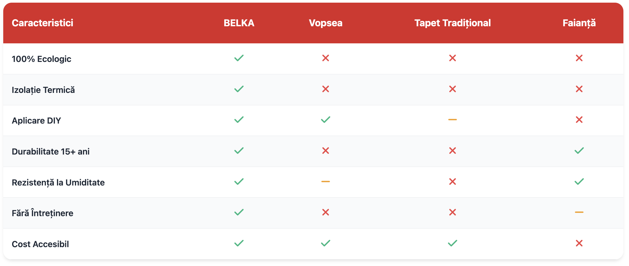 BELKA vs. Alte Soluții de Perete